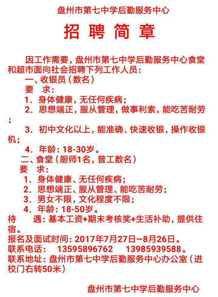 盤州市第七中學后勤服務(wù)中心招聘簡章