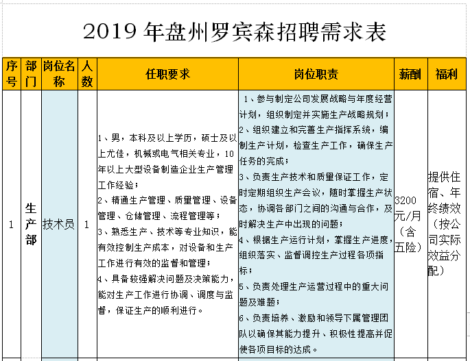 詳見附件一:2019年盤州羅賓森招聘需求表
